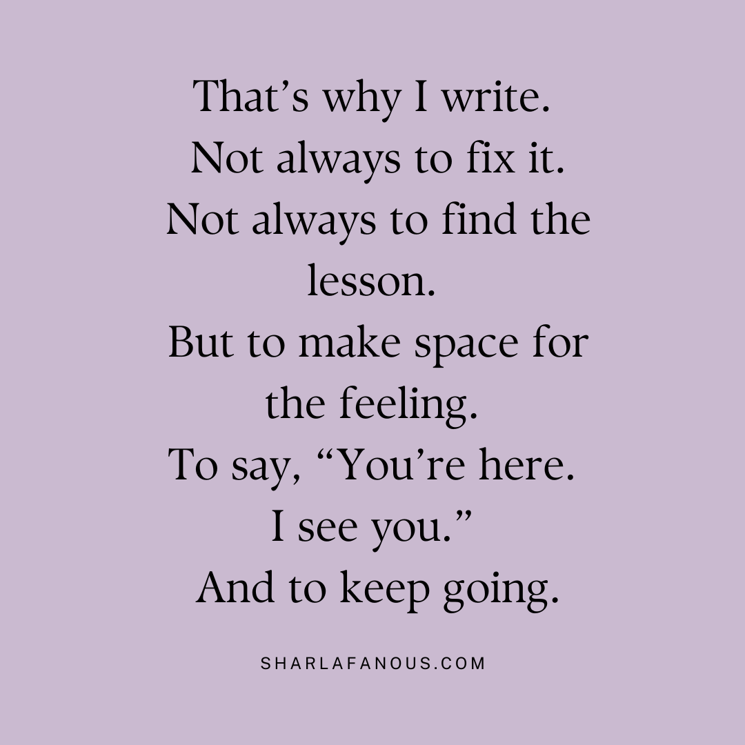 But to make space for the feeling. To say, “You’re here. I see you.” And to keep going.